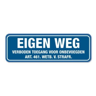 Bord Eigen weg – Verboden toegang voor onbevoegden – blauw